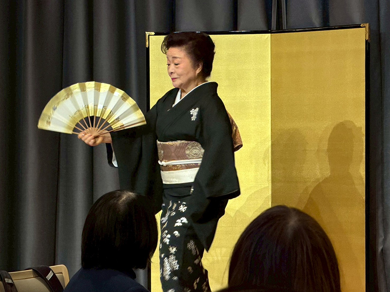 原田会長より挨拶ののち、国歌斉唱、黙祷を捧げて開会。式典として、日本舞踊花柳流師範 花柳與桂様に立春を寿ぐ舞をご披露いただきました。