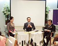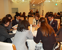 テーブルごとに、今回のテーマ「自分の魅力を磨く」について話し合いました。
