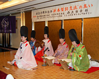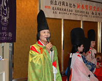 今回は「ミスター通天閣」通天閣観光株式会社の西上社長にお越しいただき、通天閣の歴史を映像やクイズを交え、楽しく教えて頂きました。第二部は日本今様謌舞楽会の皆様に歌と舞を奉納いただき、雅な世界を堪能しました。