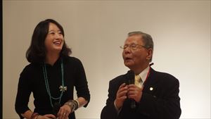 特別ゲストに書家であり学校法人四條畷学園の創業者直系4代目であり理事の牧田朝美様、そしてご紹介者である一般社団ベストジョブグループの代表 土坂英一様にご登壇いただき、常任幹事の松本典子さんにナビゲーターを務めていただきてい談を行いました。創立91周年を迎えた四條畷学園、創業時の礎となった二人のやまとなでしこ「えい」と「隈」の生き様に触れていただきました。いかなる困難にもしなやかに立ち向かった、竹のようなしなやかさと凛とした姿勢が「やまとなでしこ」たる所以なのだと感じさせていただき、背筋の伸びるおもいでした。
