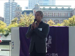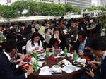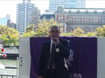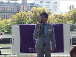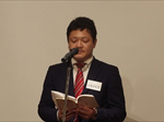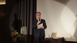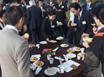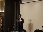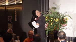 すがすがしい秋晴れの中、約170名の方々にご参加いただき開催。第一部は恒例に基づき国歌斉唱、黙祷を捧げ開会。そして発起人代表として幸南食糧株式会社 取締役会長 川西修様にご挨拶をちょうだいし、来賓代表として公益財団法人 大阪観光局理事長で大阪観光局長の溝畑宏様に当会そして関西の発展を祈念してご祝辞を賜りました。
