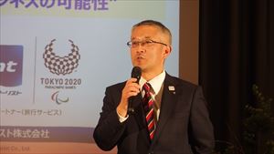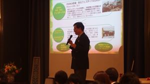 そして特別ゲスト講演では、近畿日本ツーリスト株式会社 執行役員 関西営業本部長の三田周作様に、『スポーツツーリズムによる経済活性化』というテーマで素晴らしいご講演をいただきました。東京オリンピックだけでなく、韓国で行われる冬季オリンピック、大阪マラソンなどのスポーツツーリズムの市場性や、特性も具体的にお伝えいただき非常に学びある時間となりました。その後、お食事を召し上がっていただき、会員様のPRコーナーではそれぞれの分野でご活躍される皆さま方の活動をご披露いただきました。