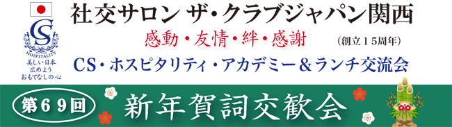 社交サロン ザ・クラブジャパン関西は平成29年で、皆さまのおかげを持ちまして15周年を迎え、1月11日(水)第69回CS・ホスピタリティー・アカデミー&ランチ交流会~新年賀詞交歓会~をとり行いました。