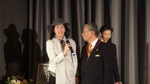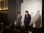 そして友情ゲスト出演では、元OSK日本歌劇団トップスターの香月蓮様の歌と牧田様の書道のパフォーマンスをご披露いただくという豪華な演出を楽しんでいただきました。牧田様には躍動感のある「夢」という字を、そして香月蓮様には夢に向かって生きる歌をご披露いただき、2人の信頼関係が垣間見える素晴らしいコラボレーションでした。
