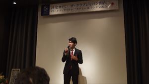 CS体験発表では若手のお二人、関西大学2回生の吉見一樹さんと京都大学院生の川部好輝さんに感想とこれからの抱負を述べていただきました。それぞれはっきりとした志を表現され、学びを生かし社会貢献活動されている姿勢に感動したとともに後世のためにもますます精進して行こうと刺激をいただきました。