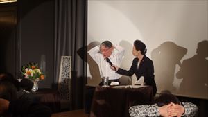 続いて、原田語録のコーナーとして、感謝の創立17周年のあゆみ~山本会長とのCSのご縁に感謝~というテーマで、ビジョン実現プロデューサー (株)コーチフィオーレ代表 藤原恵津子様にファシリテーターとして、普段語らない社交サロン ザ・クラブジャパン関西の歩みの中で原田会長の大切にしてきたことを引き出していただきました。