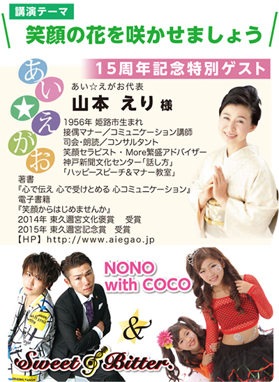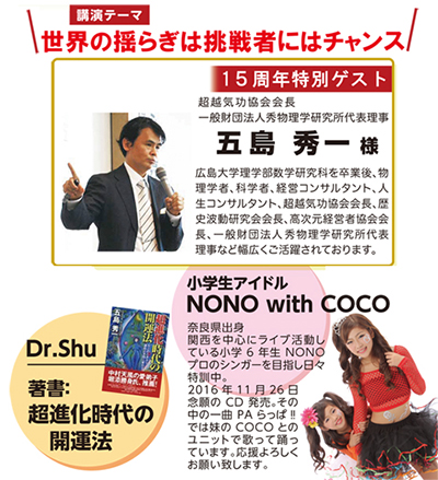 次回は3月1日(水)創立15周年 第71回CS・ホスピタリティー・アカデミー&ランチ交流会を、特別ゲストに超越気功協会会長 五島秀一様をお迎えし開催させていただきます。また、友情ゲストとして小学生アイドルNONO with COCO様をお招きしてお楽しみいただきます。ご都合ゆるす限り、お誘いあわせの上ご出席賜りますようよろしくお願い申し上げます。