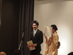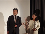 日本花道山川流家元 遠藤祐子様より17周年を記念して原田会長と水澤理事にお祝いの花束をいただいたのち、日本スマイリスト協会近藤友二様に音頭をとっていただき、笑顔の数え歌を皆さまで合唱させていただきました。結びに、メリック株式会社 代表取締役社長 森本一様に中締めの挨拶を頂戴して、お開きとさせていただきました。