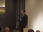 そして、特別ゲスト講演では、一般社団法人 国際ES経営理念協会 会長 江口克彦様に「松下幸之助はなぜ成功したのか!」というテーマでご講演いただきました。江口様は、故・松下幸之助氏に仕え、23年間秘書として仕えた、思想の伝承者。松下幸之助氏と毎日直接語り合ってきた中で積み重ねてきた経験や気付きの中で、