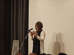 新緑が芽生える中、約150名の方々にご参加いただき開催。恒例に基づき国歌斉唱、黙祷を捧げ、原田会長より挨拶と御礼を述べさせていただきました。その後勉強会では、メイン教材「友好を深める12カ条」の第5条~苦手な人とも交流を~について上田あゆみさんにメイン教材を、心を込めて講読いただきました。CS感想発表では、会員である世界的写真家の緒方秀美さんに当会に来られての得られた学びと感動を発表していただきました。