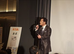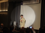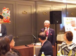 その後、皆さまでお食事を召し上がっていただき、駆け付けていただいた大阪観光局長の溝畑宏様、まいど一号でお馴染み株式会社アオキ取締役会長 青木豊彦様、元科学技術庁長官 近江巳喜夫様、に大阪万博が決まりますます盛り上がる関西の皆さまにエールをいただきました。その後、会員PRのコーナーをとり行わせていただきました。
