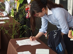 梅が咲き始めた春の日に約130名の方々にご参加いただき開催。恒例に基づき国歌斉唱、黙祷を捧げ、原田会長より挨拶と御礼を述べさせていただきました。勉強会では、メイン教材「友好を深める12カ条」の第3条~相手の名前を覚える~について松田江利子さんにメイン教材を心を込めて講読いただき、その後テーブル毎にシェアの時間を設けさせていただきました。常連の方にファシリテーターを務めていただき、各テーブルで参加者お一人おひとりに発言していただき意見を交換することで学びに変えていただきました。そして、CS感想発表では、常任幹事で司会の優希瞳さんに当会に来られての得られた学びと感動を発表していただきました。