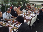 その後、テラスへ移動して第二部を開催。料理研究家の程一彦様、そして超越気功協会会長 五島秀一様に第二部開会にあたって、ご挨拶を頂戴し乾杯の音頭をとっていただきました。皆さまでお食事を召し上がっていただき、関西を盛り上げるイベントの告知を行っていただきました。プロマジシャンのジョン道坂様にはミニマジックでも会場を沸かせていただき、そして10月がお誕生月の皆さまをお祝いさせていただきました。