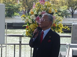 台風一過の翌日、約120名の方々にご参加いただき開催。恒例に基づき国歌斉唱、黙祷を捧げ、原田会長より挨拶を述