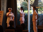 その後、ミス・コスモポリタンワールドジャパン運営事務局の上山真里愛様に先日のコンテストの活動報告を行っていただいたのち、友情ゲスト出演として、魂を震わせるシンガー 雅子様によるミニコンサートをお楽しみいただき第一部の結びといたしました。