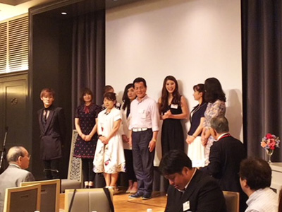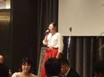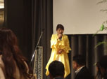 その後、ミス・コスモポリタンワールドジャパン運営事務局の上山真里愛様に先日のコンテストの活動報告を行っていただいたのち、友情ゲスト出演として、魂を震わせるシンガー 雅子様によるミニコンサートをお楽しみいただき第一部の結びといたしました。