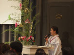 式典にあたり、日本家道山川流 家元 遠藤祐子様のご厚意により参加者全員にて世界平和を祈り生花を奉献していただき