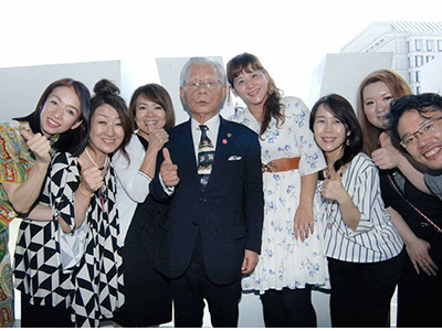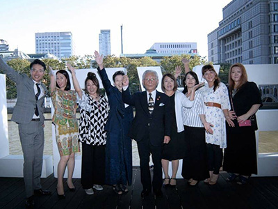 締めくくりに、日本スマイリスト協会会長の近藤友二様に音頭をとっていただき、原田会長に対する感謝のエールを送っ