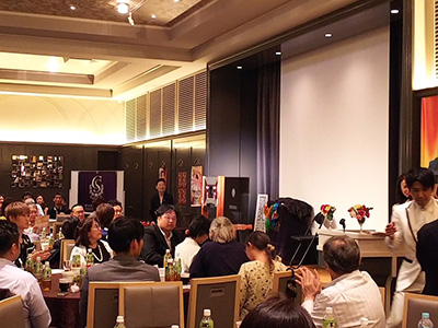その後、皆さまでお食事を召し上がっていただき、会員様によるPRを行っていただきました。最後に、日本スマイリスト協会会長の近藤友二様に音頭をとっていただき、みな様で笑顔になる歌を大合唱させていただき、元気にお開きとさせていただきました。