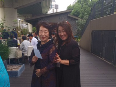 特別ゲストに書家であり学校法人四條畷学園の創業者直系4代目であり理事の牧田朝美様、そしてご紹介者である一般社団ベストジョブグループの代表 土坂英一様にご登壇いただき、常任幹事の松本典子さんにナビゲーターを務めていただきてい談を行いました。創立91周年を迎えた四條畷学園、創業時の礎となった二人のやまとなでしこ「えい」と「隈」の生き様に触れていただきました。いかなる困難にもしなやかに立ち向かった、竹のようなしなやかさと凛とした姿勢が「やまとなでしこ」たる所以なのだと感じさせていただき、背筋の伸びるおもいでした。
