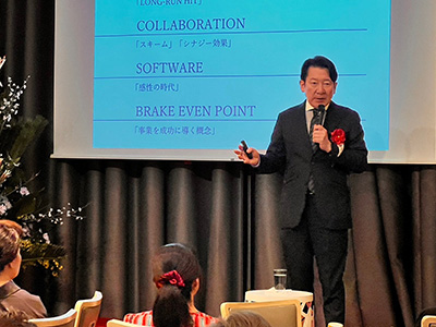 特別ゲストとして株式会社カトープレジャーグループの加藤友康様にご講演をいただきました。コロナ禍で大きなダメージを受けたにもかかわらず、全国に高級リゾートを次々と開発し、昨年最高売上と最高収益を達成。ピンチをチャンスに変えた経営の秘訣を話していただきました。22歳で先代であるお父様を亡くし、経営を引き継がれ、理想を描いた。経営人生を振り返りながら、レジャー産業のトータルプロデュースにより新しい事業と市場を構築していく想いとノウハウも共有いただき、実りある時間となりました。
