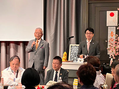 その後は友情ゲスト出演として、歌手の草笛四郎様にミニコンサートを行っていただきました。途中で当会の原田会長とのデュエットもしていただき、大いに盛り上がりました。