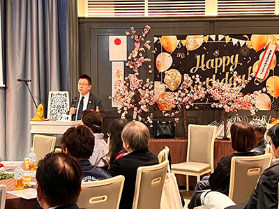 続く特別ゲスト講演では、日本一明るい経済新聞の竹原信夫様に、『成功の法則!元気な人に共通する「あいうえお」とは』というテーマでご講演いただきました。ネガティブにより多く焦点を当てるメディア業界に疑問をもち、魅力的な中小企業の創意工夫を取り上げることで日本を元気にしたい。そのような情熱を日々の自転車での取材活動で実行されています。知恵と工夫で変化する時代を切り拓く企業や人を取材する中で見えてきた共通点や実例をご紹介いただき、学びと勇気をいただけた時間になりました。なお、当講演をご推薦いただいた、幸南食糧株式会社 取締役会長 川西修様に謝辞を述べていただきました。