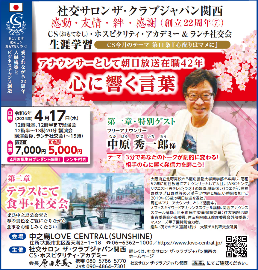 社交サロン ザ・クラブジャパン関西 第152回記念CSホスピタリティ・アカデミ