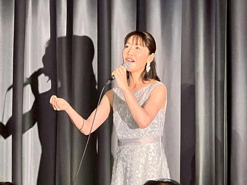 そして、友情ゲストのシンガーソングライター恍多様ミニコンサートを行っていただきました。美しくも迫力のある歌と姿に、皆様も惹きつけられ聞き入っていました。恍多様が謳われている、5月23日より全国劇場公開される映画「ドラゴン・ハート」の主題歌もご披露いただきました。