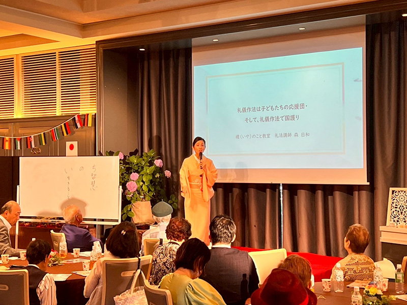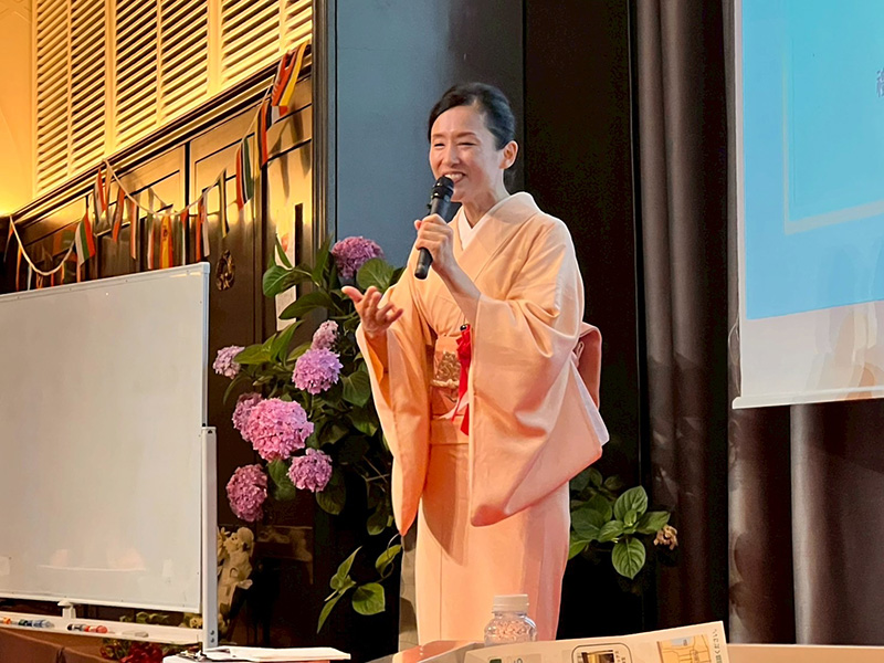 特別ゲスト講演では、禮(いや)のこと教室 主宰の森日和様にお越しいただきました。礼儀作法は堅苦しいものだけではなく、相手に合わせることが本質である。日本の美しさや良さを知らない若者に伝えることで、誇りをもって生きてほしい。具体的な作法に加え、考え方や想いについてもお伝えいただきました。柔らかい物腰の中に、凛とした芯を感じさせる所作や言動はまさに大和撫子という言葉が当てはまるように感じました。
